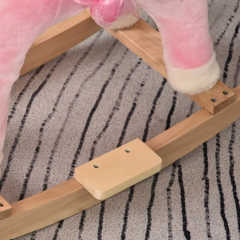 Kids Plush Rocking Horse Ride On Unicorn w/ Sound Moving Mouth Wagging Tail Children Rocker Toy Gift 3-6 Years Pink
